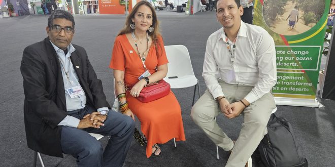 Belém, 14 novembre 2025. En marge des travaux de la COP 30 UNFCCC qui se tient actuellement à Belém au Brésil, le Directeur Général de l’ONEL a eu une séance de travail avec l’équipe de l’Observatoire du Sahara et du Sahel (OSS), chargée de la finance climatique, Madame Khaoula Jaoui et Monsieur Aziz Belhamra.
